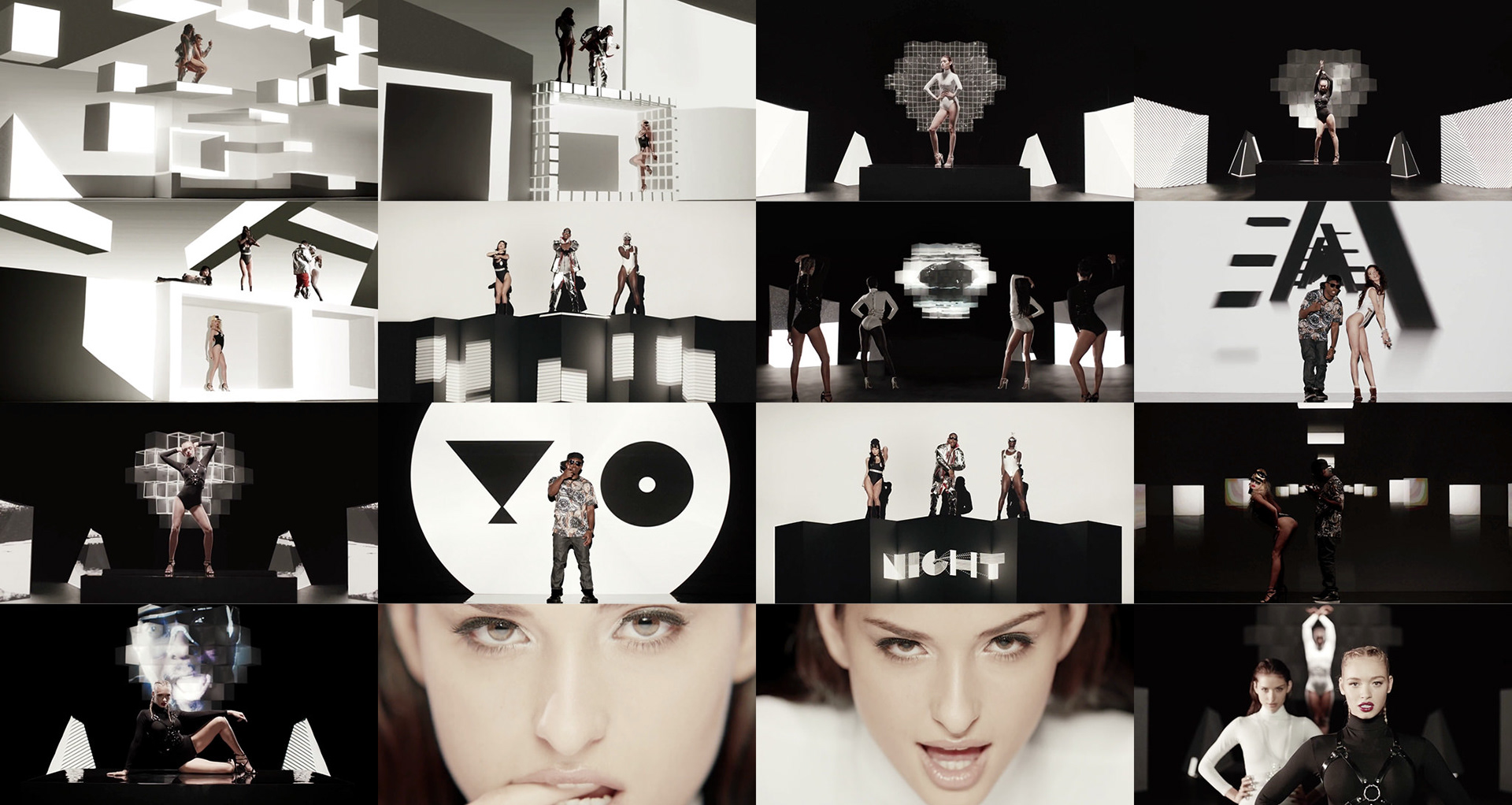 Had the amazing opportunity to create some visuals and typography for Dizzee Rascal’s video clip “Something Really Bad”. Working with Director Henry Scholfield and his team at Partizan, we were able to utilise projection-mapping to create something really good for Dizzee Rascal and Will.I.Am's “Something Really Bad”. We wanted to create a fusion between geometric (the beat) and organic (the lyrics) shapes to create something unique, mixing rap with EDM. The projection mapping would change the stage into impossible shapes, creating a sense of unsettling nature because of our natural desire to interpret 2D drawings as three-dimensional objects.