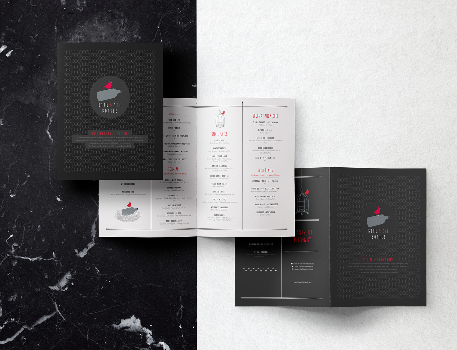 A modern tavern celebrating the American melting pot, Bird and the bottle is an open kitchen, with its wood-fired grill, turns out large and small plates designed for sharing in one of three cozy dining rooms or two decks. Wines, craft beers on tap and by the bottle or growler, and signature cocktails by the glass or by the shaker to share.