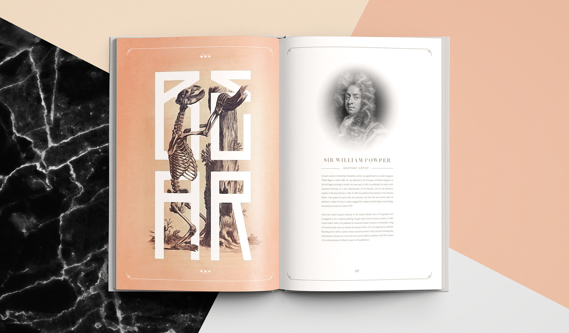 Bone - Anatomy Illustrated is a book designed to showcase the master illustrators of the 16-19th centuries. In particular, it focuses on the vintage English illustrators, surgeons and teachers of anatomy. Their works have been redesigned into a modern style, incorporating typography as a sense of interaction with the illustrations.