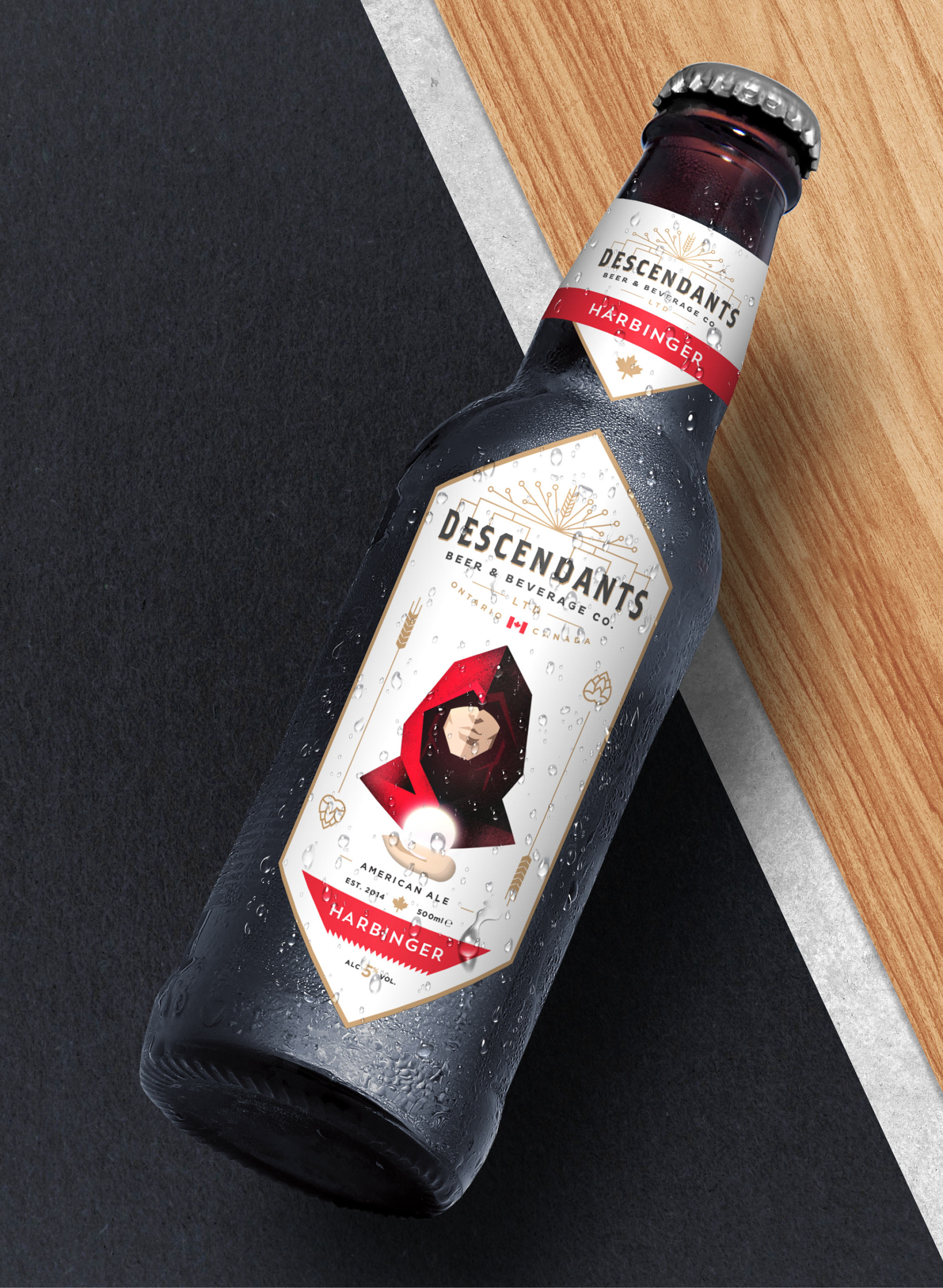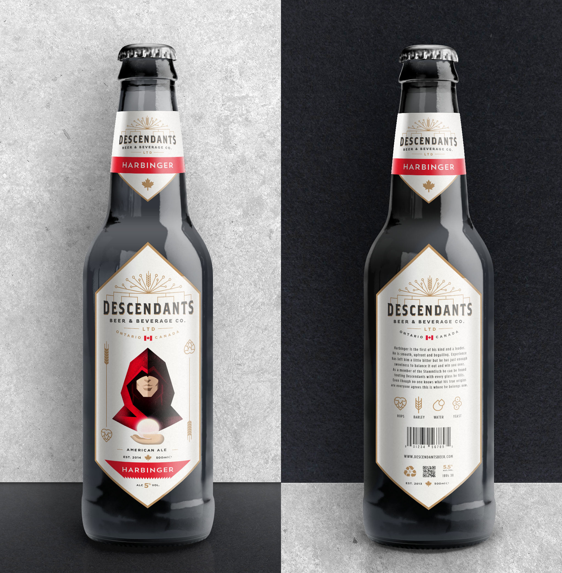 The Descendants are producers of hand crafted, creative, small batch, beers. Their beers are so special, that it has taken generations of commitment and evolution to create a single drop. Each flavour passed down from one generation to the next which gives you a rich new experience with every taste. I had the opportunity to create the branding of the label and one of the original Descendants characters, Harbinger, as a mysterious hero who oversees all others.