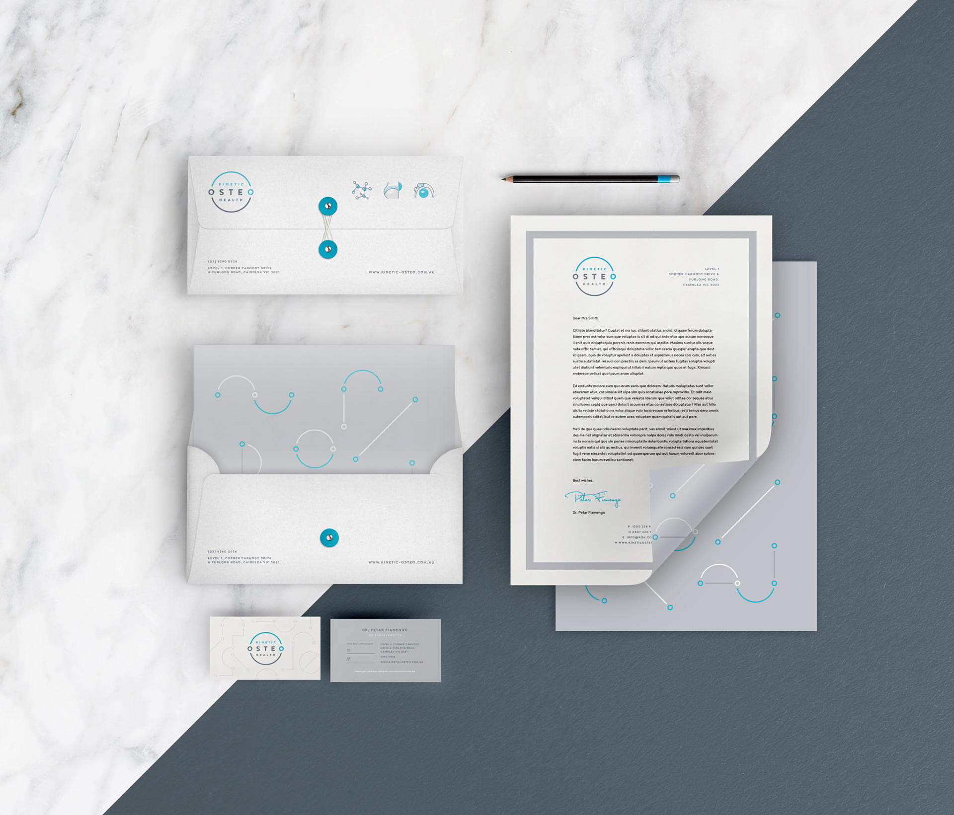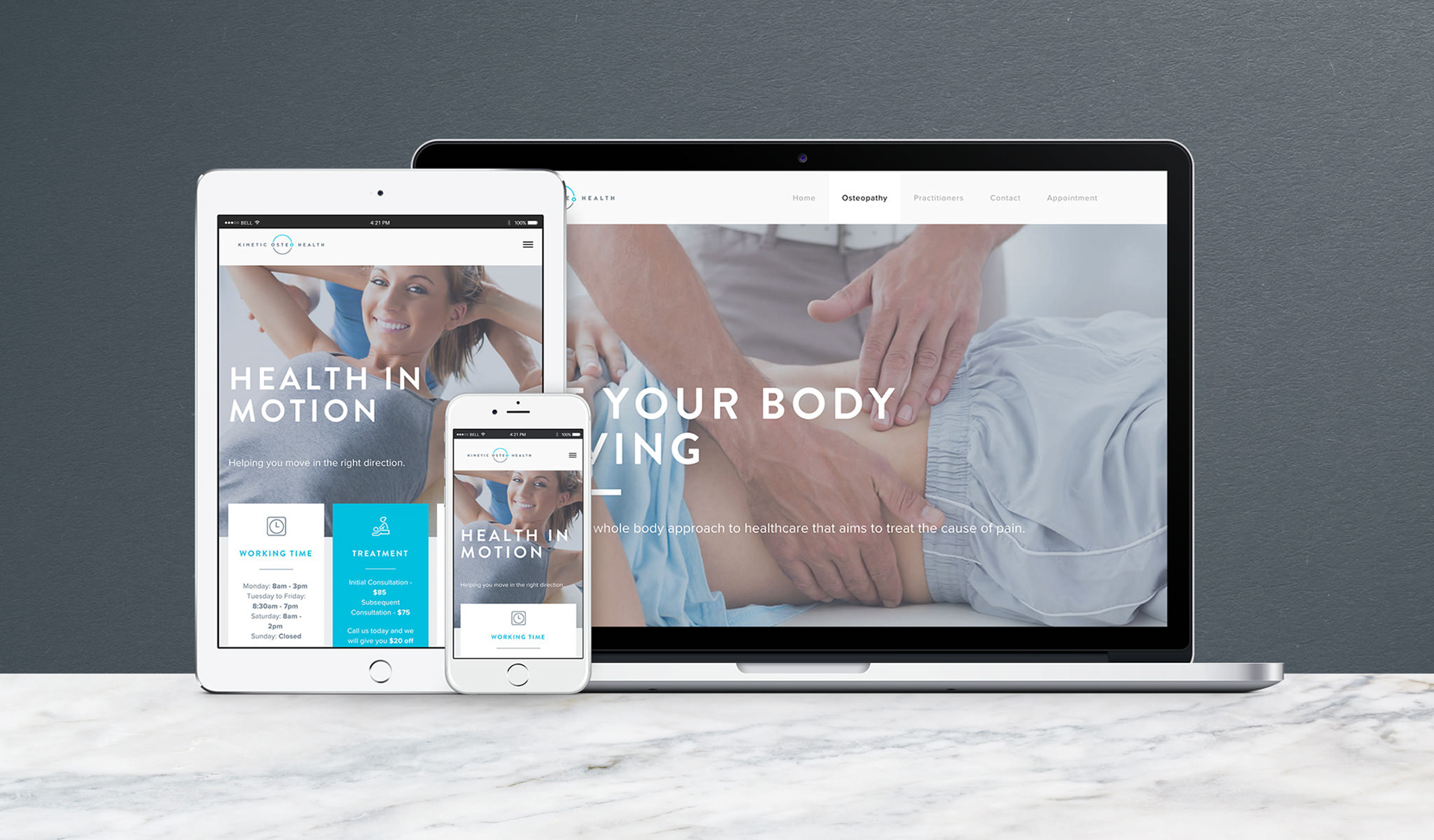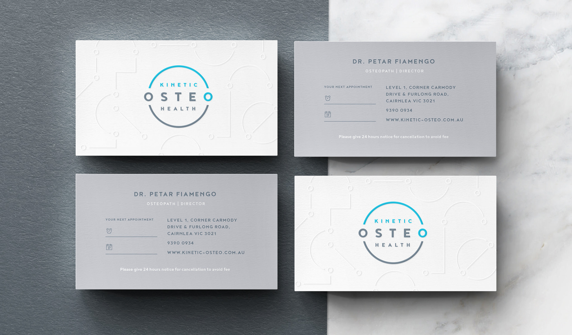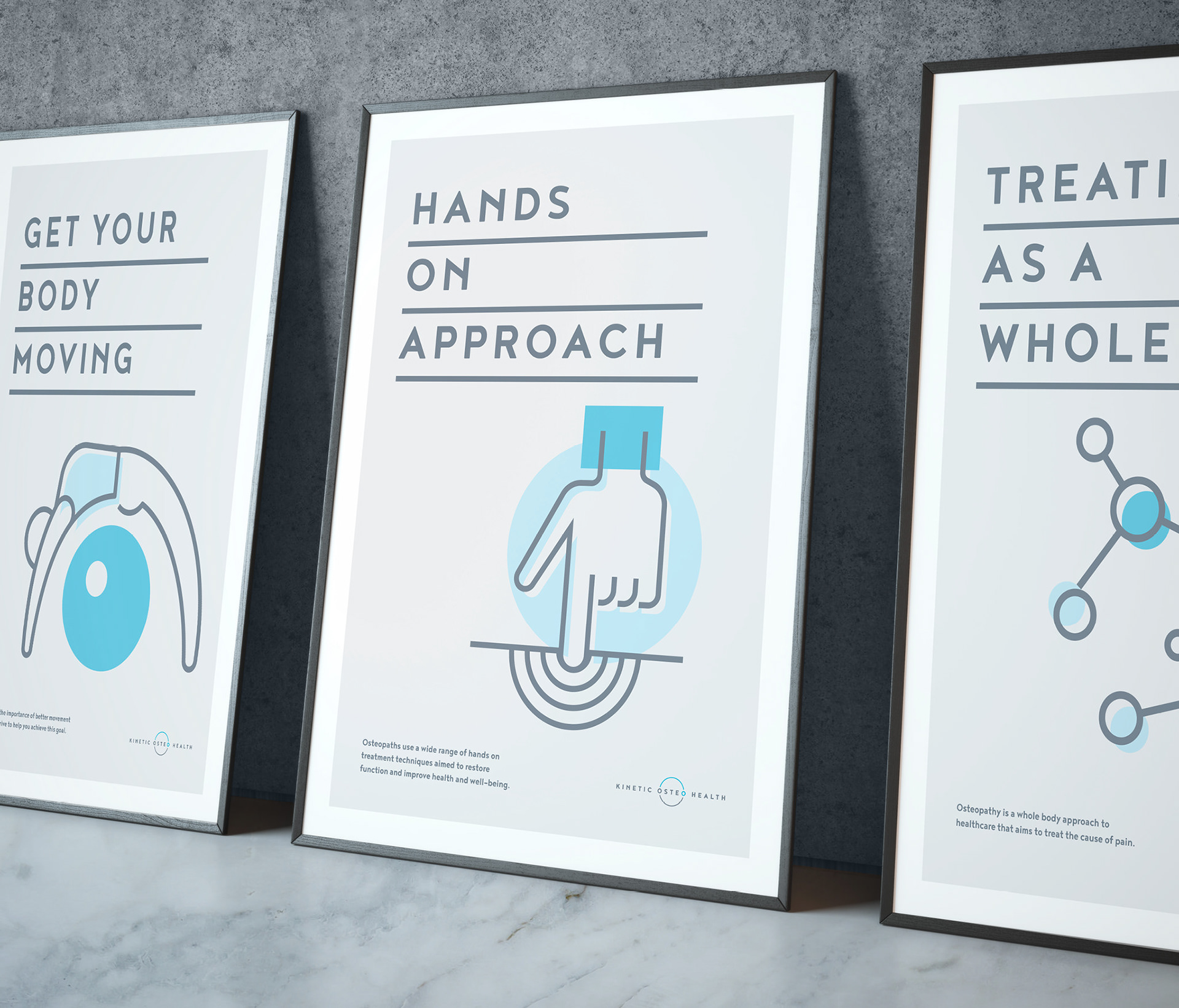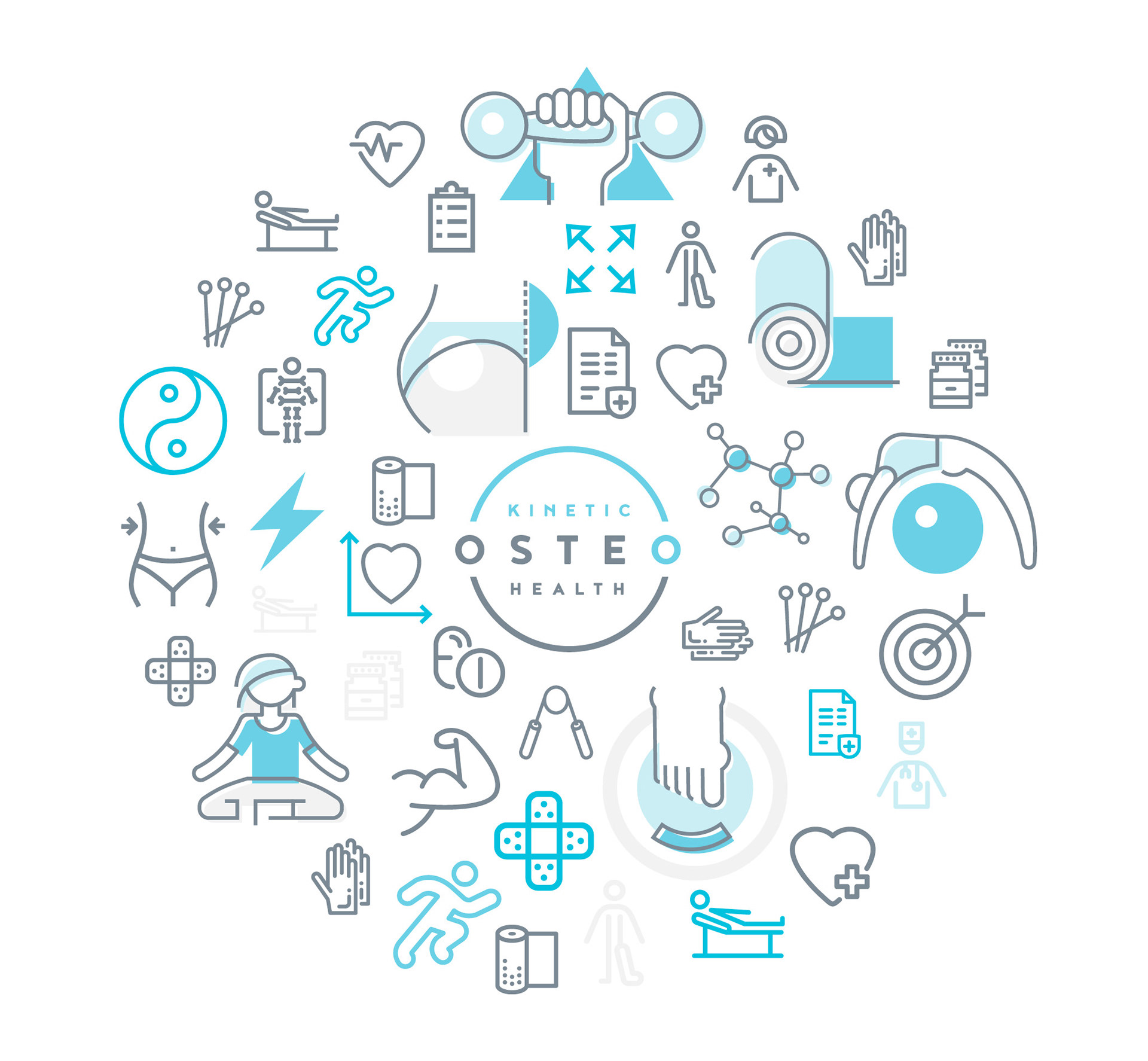 Kinetic Osteo Health is a new Osteopathy clinic located in Melbourne Western Suburbs. The team focuses on better body movement, so I wanted to create a logo that would move as well. The result is a positive, animated and friendly mark that can create motion even when static.