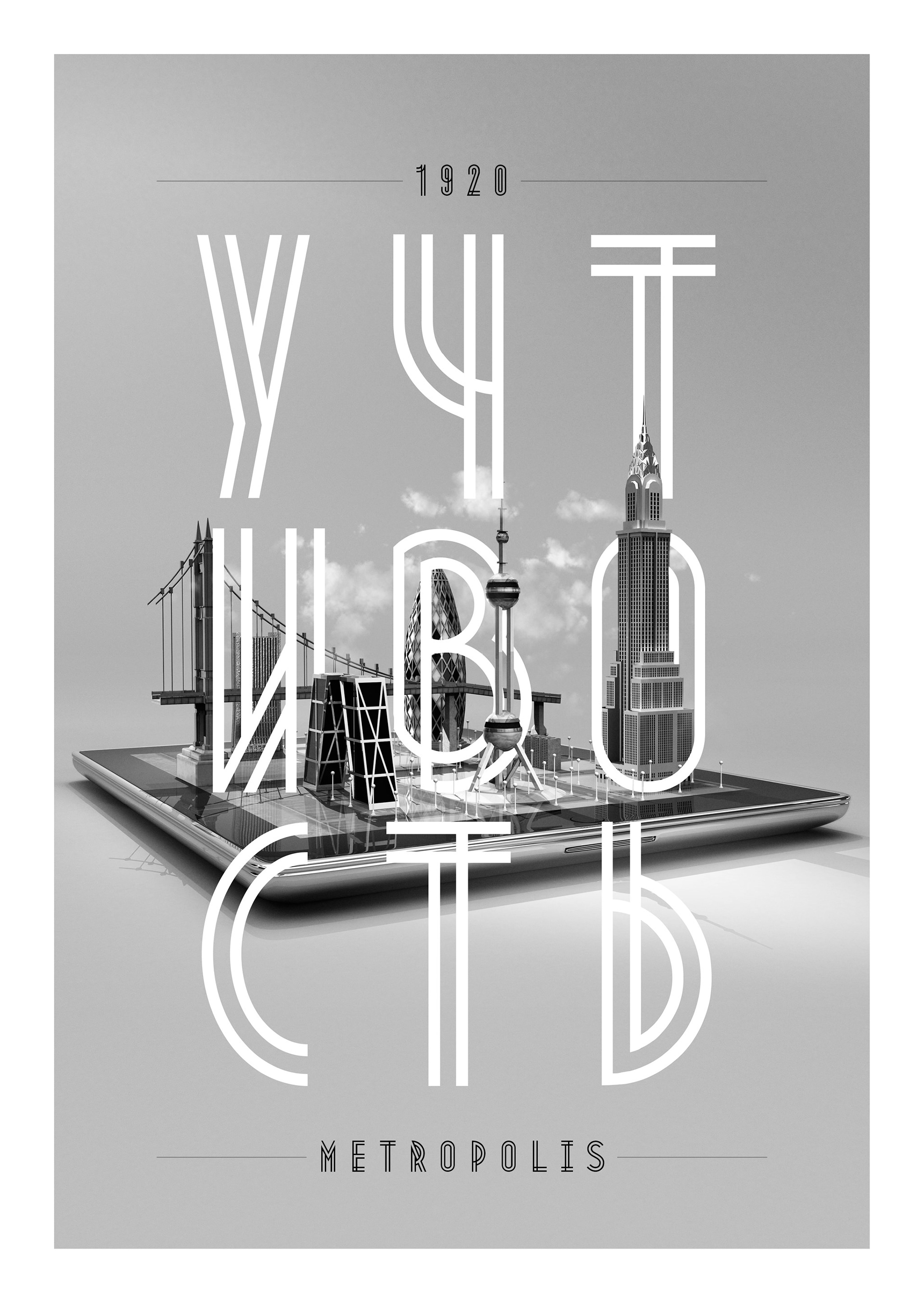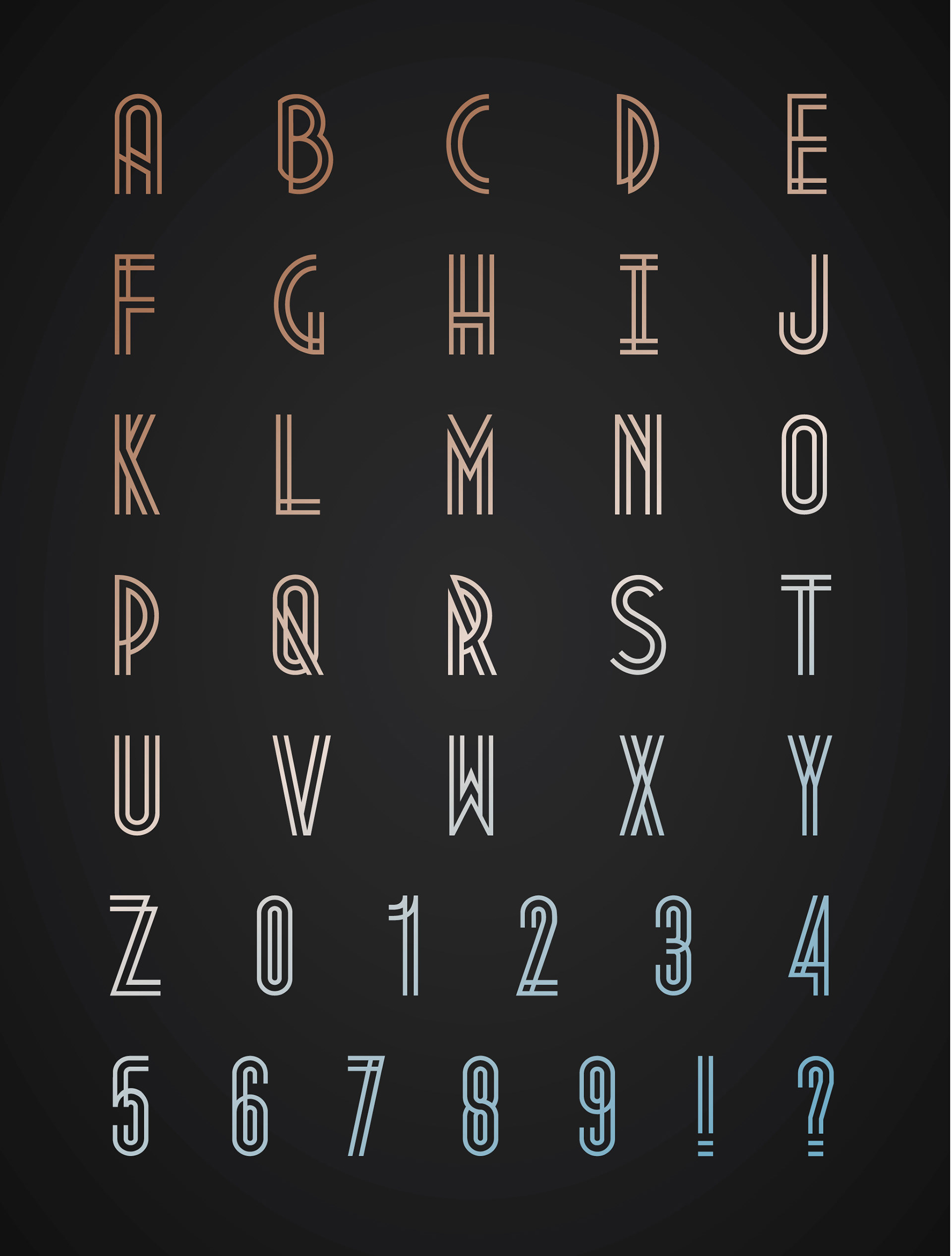 Metropolis 1920 comes from the industrial movement of the 1920's where skyscrapers where born. Using a double line technique, I wanted to create my own Art Deco style font that represented this era. The result is a bold, bumptious typeface with a stolidly calm disposition.