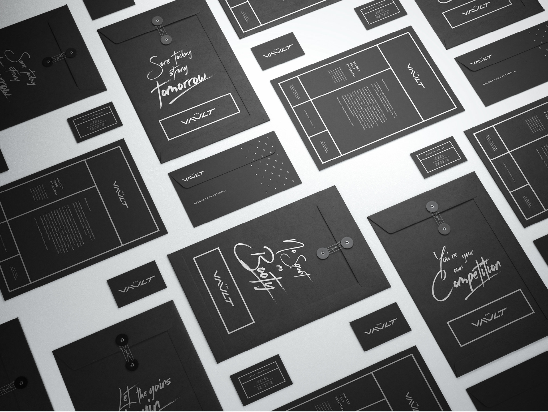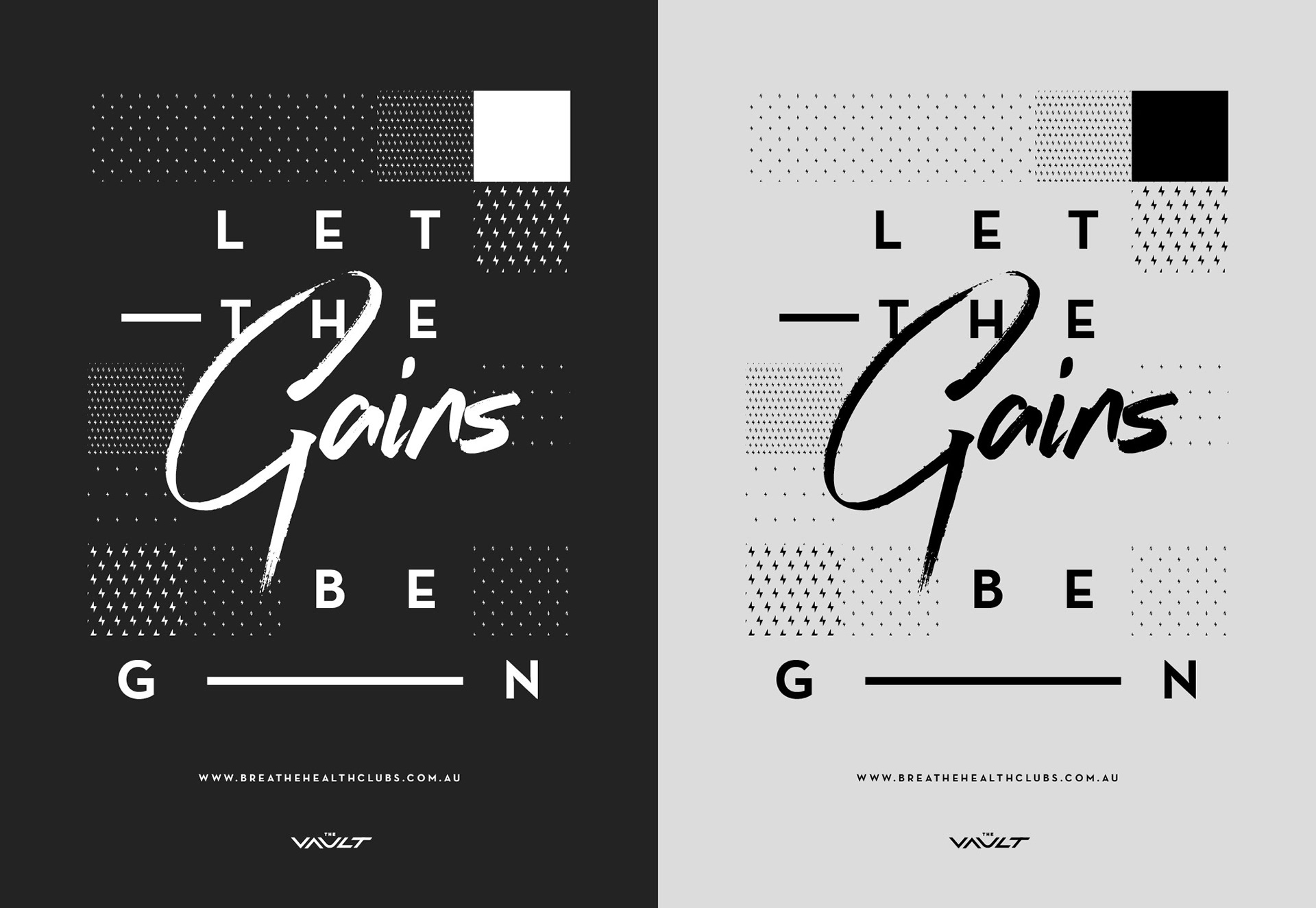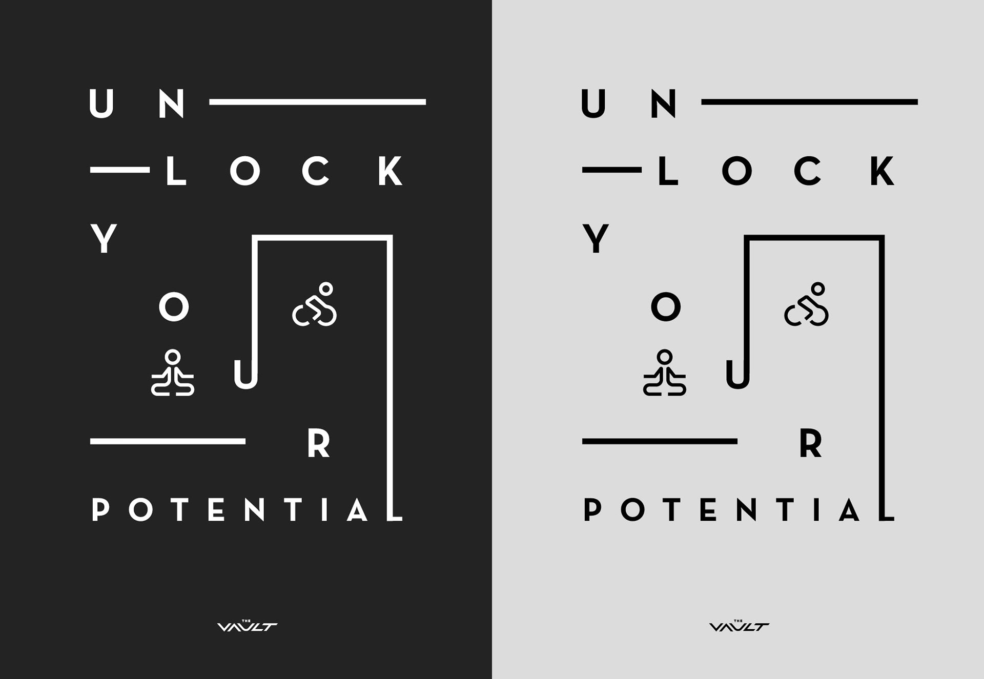 The Vault is an underground fitness gym specialising in core strength and Crossfit training. Located in Toowoomba, Queensland, the Vault aimed to target those who wanted to focus on their strengths and weaknesses in high intensity bodyweight training and weightlifting. The aim was to create a brand that showed attitude, motivation and play through various typography styles. The typography was loosely based on Crossfit workout boards, where each workout is ‘crossed off’ when completed. I wanted to create movement within the posters as a representation of various workout areas and their level of intensity.