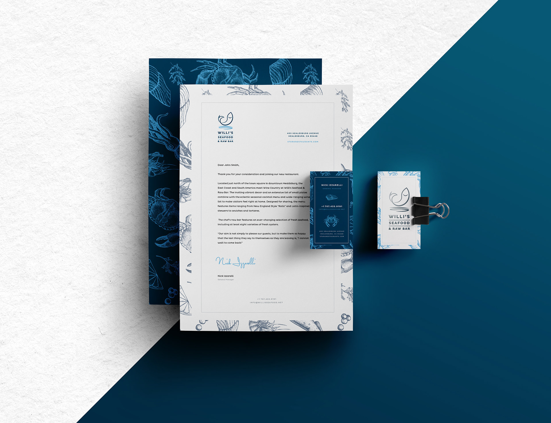 I had the opportunity to rebrand Willi's Seafood & Raw Bar from their current branding to an updated fresh new look. The client wanted to keep elements from their previous logo but have the design elements cleaned up in a new look and feel.